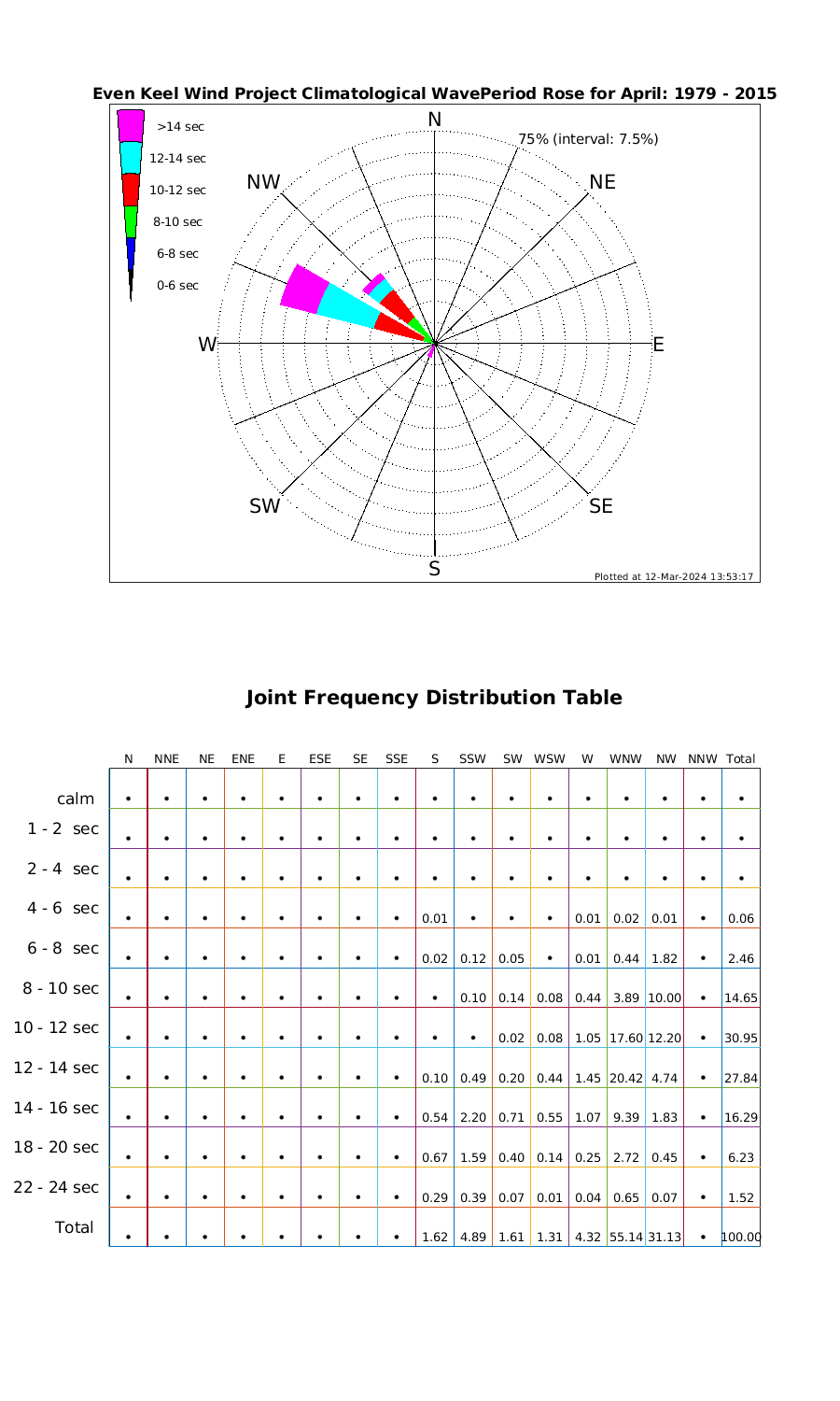 Wave Period Directional Rose & Table