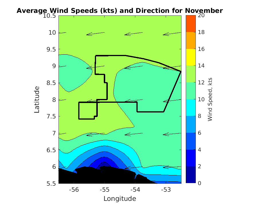 Latitude: 8.00 N Longitude: 54.50 W