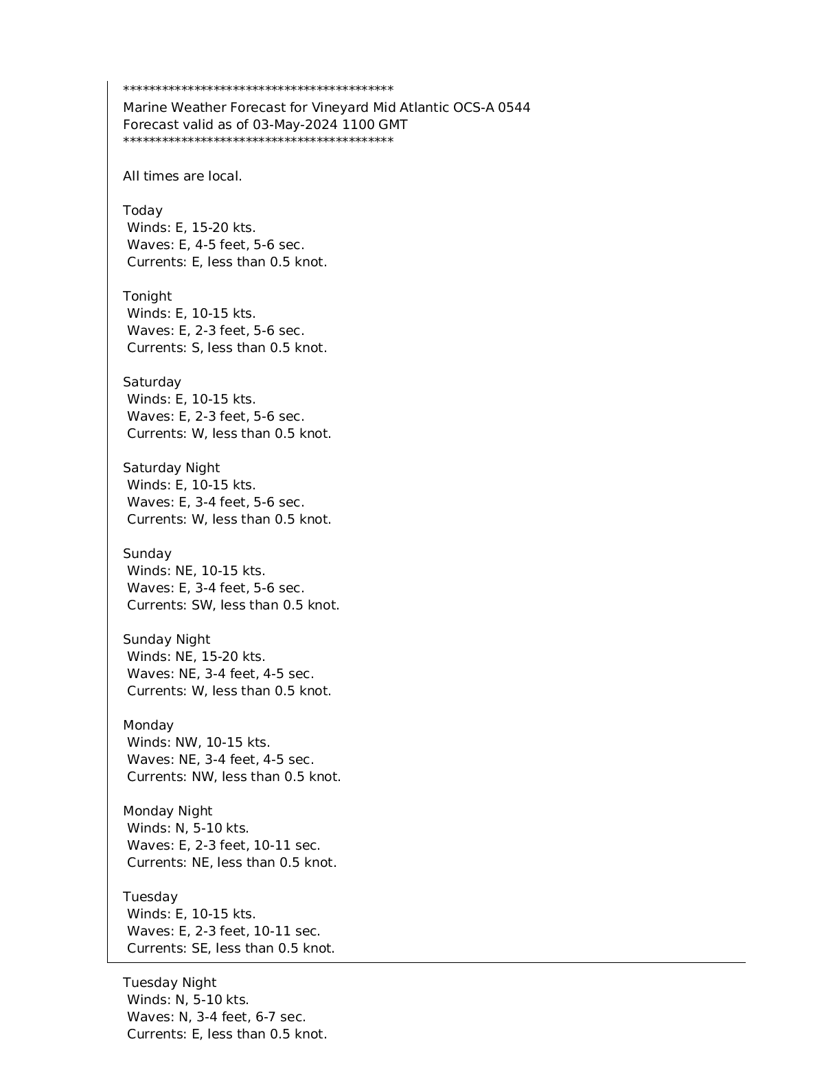 Weather Buoy 44065 – 29 nm to the West